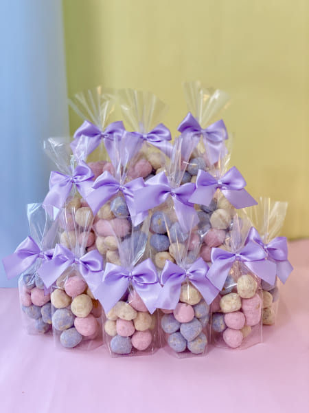 Nossas pipocas são preparadas com grãos selecionados e ingredientes de alta qualidade, resultando em uma explosão de sabores únicos. As pipocas são embaladas em pacotes coloridos e decorados, perfeitas para serem utilizadas como lembrancinhas em festas de aniversário, casamentos, chá de bebê e outros eventos. Oferecemos opções de personalização com tags e etiquetas que combinam com a temática da sua festa. Garantimos que cada pipoca seja crocante e fresca, proporcionando uma experiência deliciosa para os seus convidados.